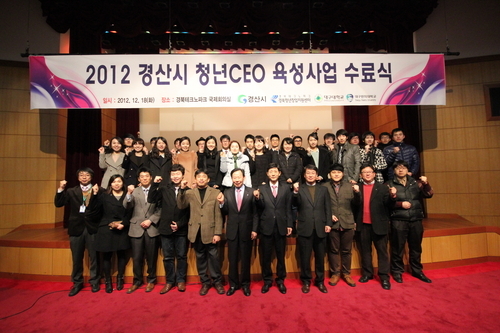 경산시는 18일 경북테크노파크(경북TP) 국제회의실에서 경북TP와 대구대·대구한의대학교 등 3개 운영기관 관계자 및 청년CEO가 참석한 가운데 ‘2012 청년CEO 육성사업’ 수료식을 개최했다.